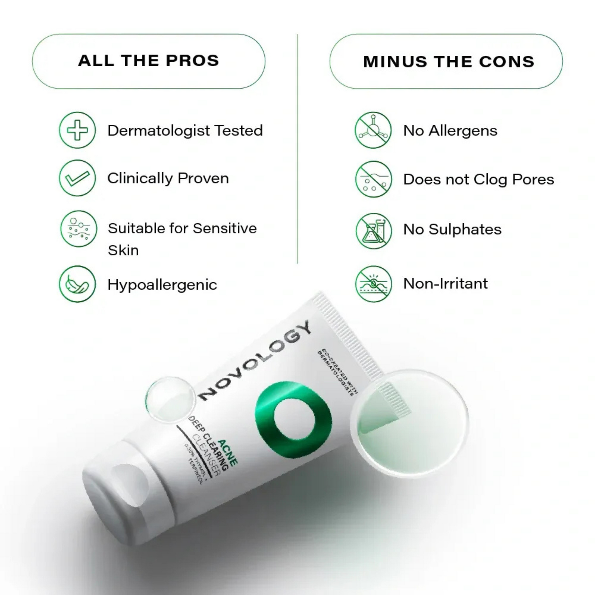 Say goodbye to stubborn acne without compromising your skin’s moisture barrier! Novology Deep Clearing Acne Cleanser is a dermatologist-developed formula powered by patented TT2 Technology (0.35% Thymol + Terpineol) to reduce acne from Day 3 while keeping skin balanced and hydrated for up to 100 hours.